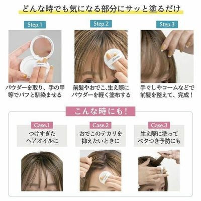 A lightweight hair powder designed to refresh and reset bangs and front hair areas throughout the day. Helps absorb excess oil and restore a clean, airy look without the need for washing or restyling.