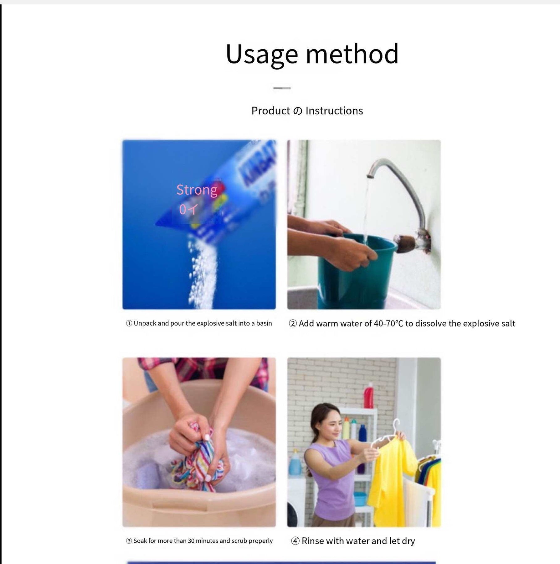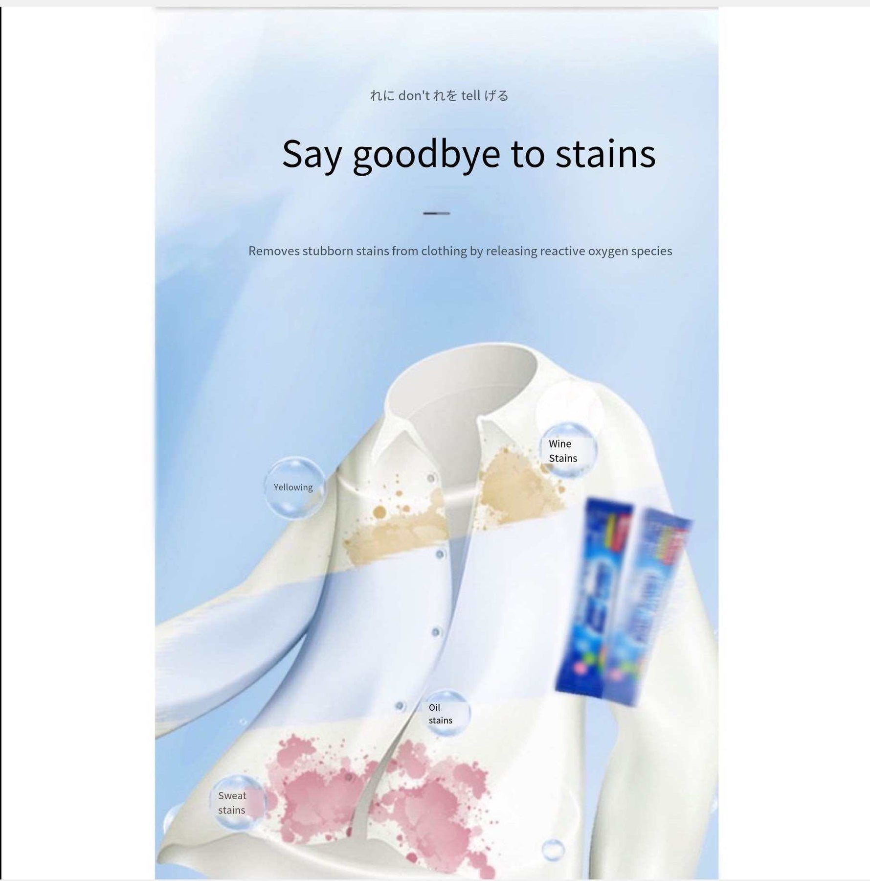 A powerful colour-safe bleaching powder that helps remove tough stains, odors, and buildup from laundry. Each sachet activates with water to deeply clean fabrics while being safe for coloured clothing.