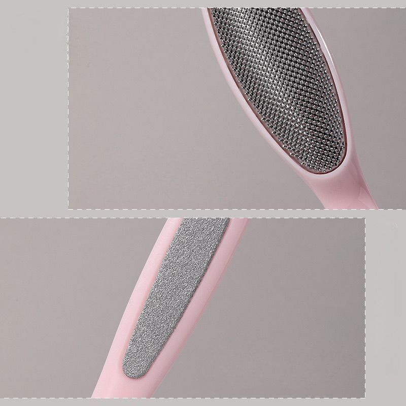 The stainless steel rasp surface feels firm and effective against thickened skin, while the handle is lightweight and easy to hold. Designed for controlled exfoliation without excessive friction when used properly.