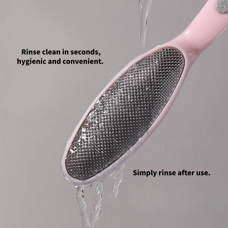 ✓ Dual-action stainless steel surface helps exfoliate hardened skin