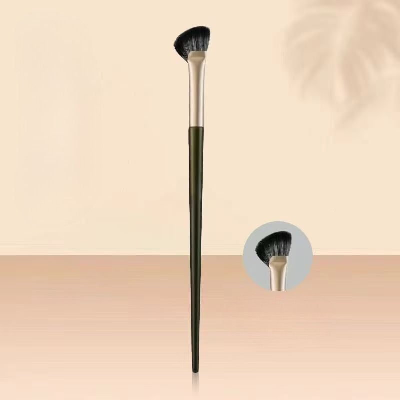 A half-fan shaped brush designed for subtle nose contouring and detailed shadow placement. The slim profile allows controlled application along the bridge and sides of the nose. Suitable for soft, natural definition in everyday makeup.