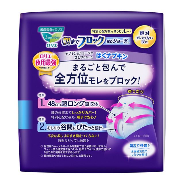 A super-absorbent overnight panty pad designed to provide secure, comfortable protection throughout the night. With extended 48cm coverage and a snug L-size fit, it helps prevent leaks so you can sleep without interruptions.