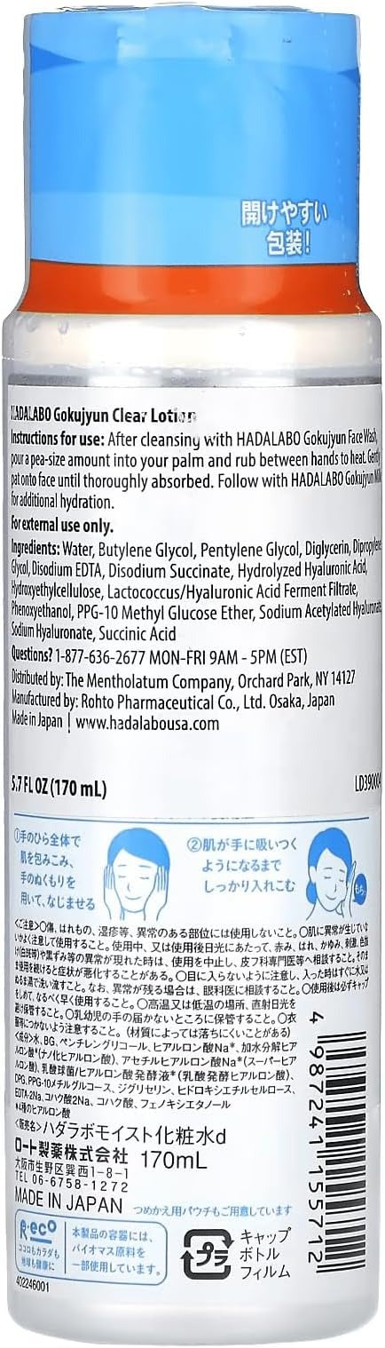 Hada Labo Gokujyun Hyaluronic Lotion Moist is a deeply hydrating toner designed to replenish moisture and support soft, comfortable skin. Formulated with hyaluronic acid, it helps skin retain water while maintaining a smooth, healthy feel. A daily essential for those who want reliable hydration without irritation.